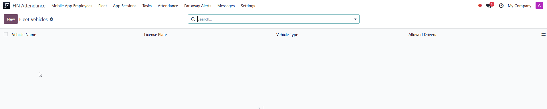 Driver employees receive allowed vehicle lists and required kilometrage validation.