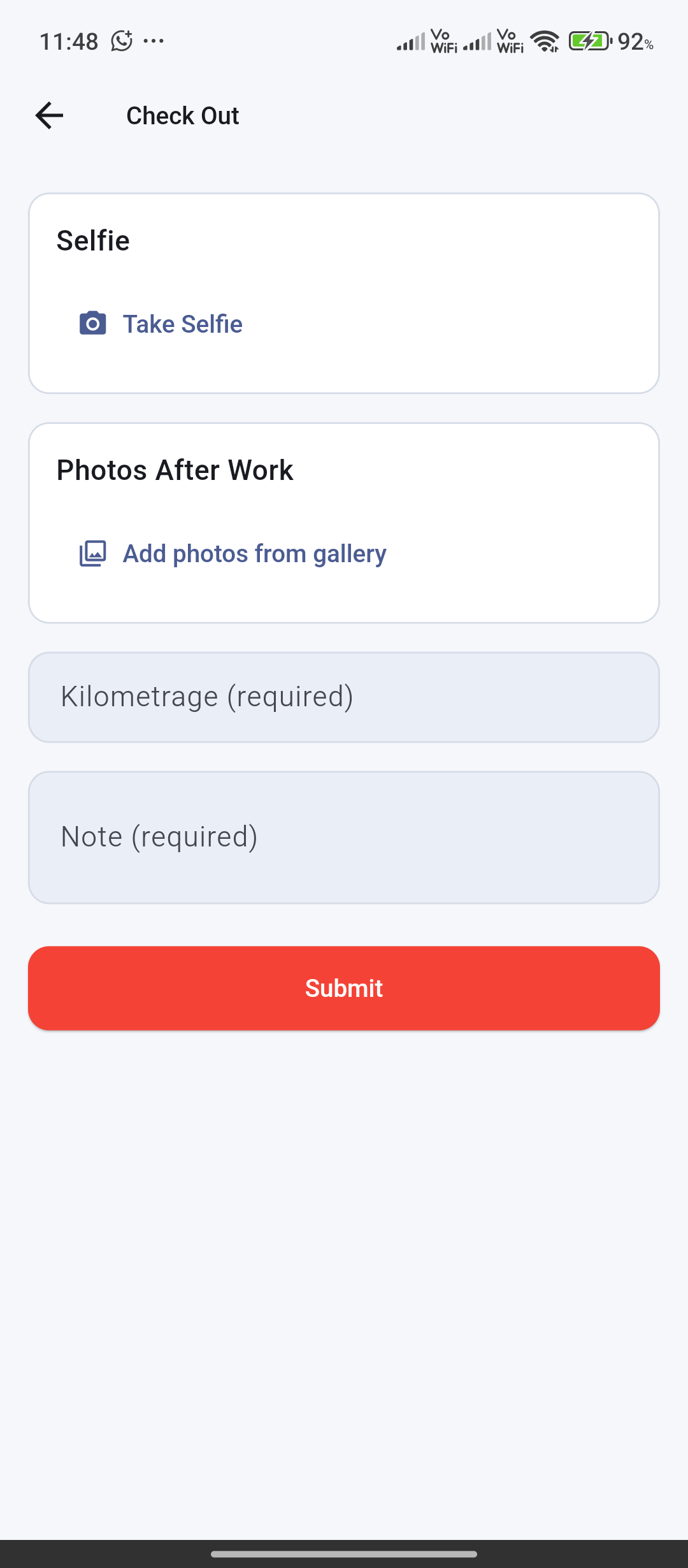 Both check-in and check-out require a note before submission.