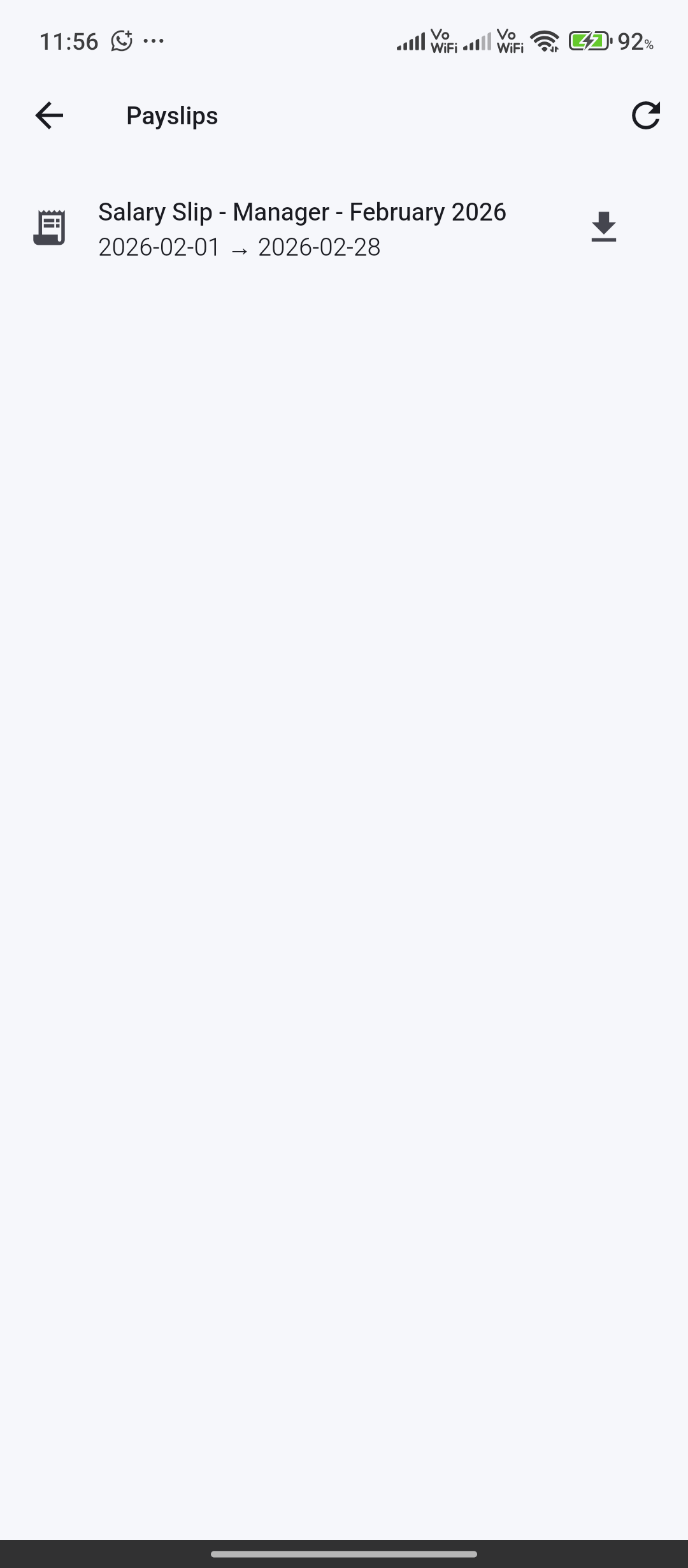 Employee payslip listing and PDF download when payroll is enabled in the Odoo database.