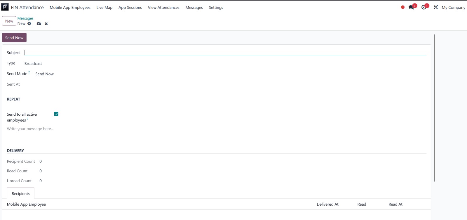 Send announcements and scheduled/repeat messages to mobile app employees.
